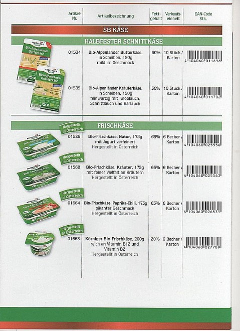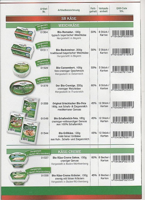 ab 1.3.2013 wird Art.Nr. 1504 durch "1512 Klosterkäse"(Romadur) 6 Stk./Kto. ersetzt!